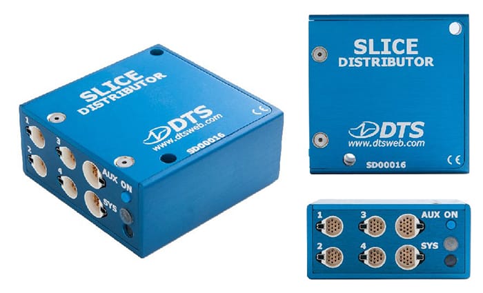 SLICE Distributor supports Ethernet communication, power, and control signals between multiple SLICE system chains, up to hundreds of sensor channels. The SLICE Distributor is ideal for in-dummy applications or for applications requiring Ethernet connectivity. SLICE Distributor is rugged and crashworthy.