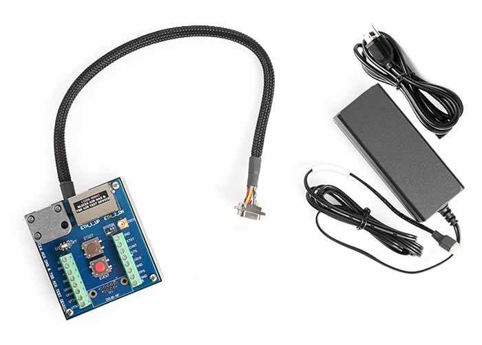 SLICE6 AIR/SLICE6 AIR-BR/TSR AIR Test Device connects directly to the system connector to support time synchronization (1588 PTPv2, IRIG-B, GPS/1PPS) and control onboard recording functions: • On/off switch • Start record • Event/T=0 • Status LED The SLICE6 AIR/SLICE6 AIR-BR/TSR AIR Test Device Kit includes: SLICE6 AIR Test Device and a Power Supply.