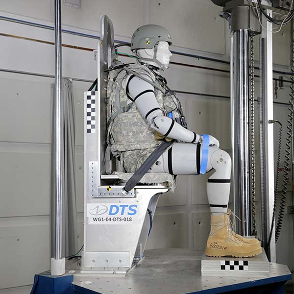 In 2013, the U.S. Army Research Laboratory selected DTS as the prime contractor to develop the Warrior Injury Assessment Manikin. WIAMan is the first instrumented test manikin designed specifically for vertical loading. The most advanced, biofidelic test manikin in the world, WIAMan is built to withstand repeated high-energy underbody blasts (UBB), such as those from improvised explosive devices (IEDs). The test data is used to advance soldier safety, including next-generation military vehicles and protective gear. Unlike traditional crash test dummies developed for automotive safety testing, WIAMan delivers reliable and repeatable vertical load data (versus frontal, side, or rear impact kinematics). DTS SLICE6 data recorders and sensors are integrated throughout WIAMan to collect the critical injury data. |